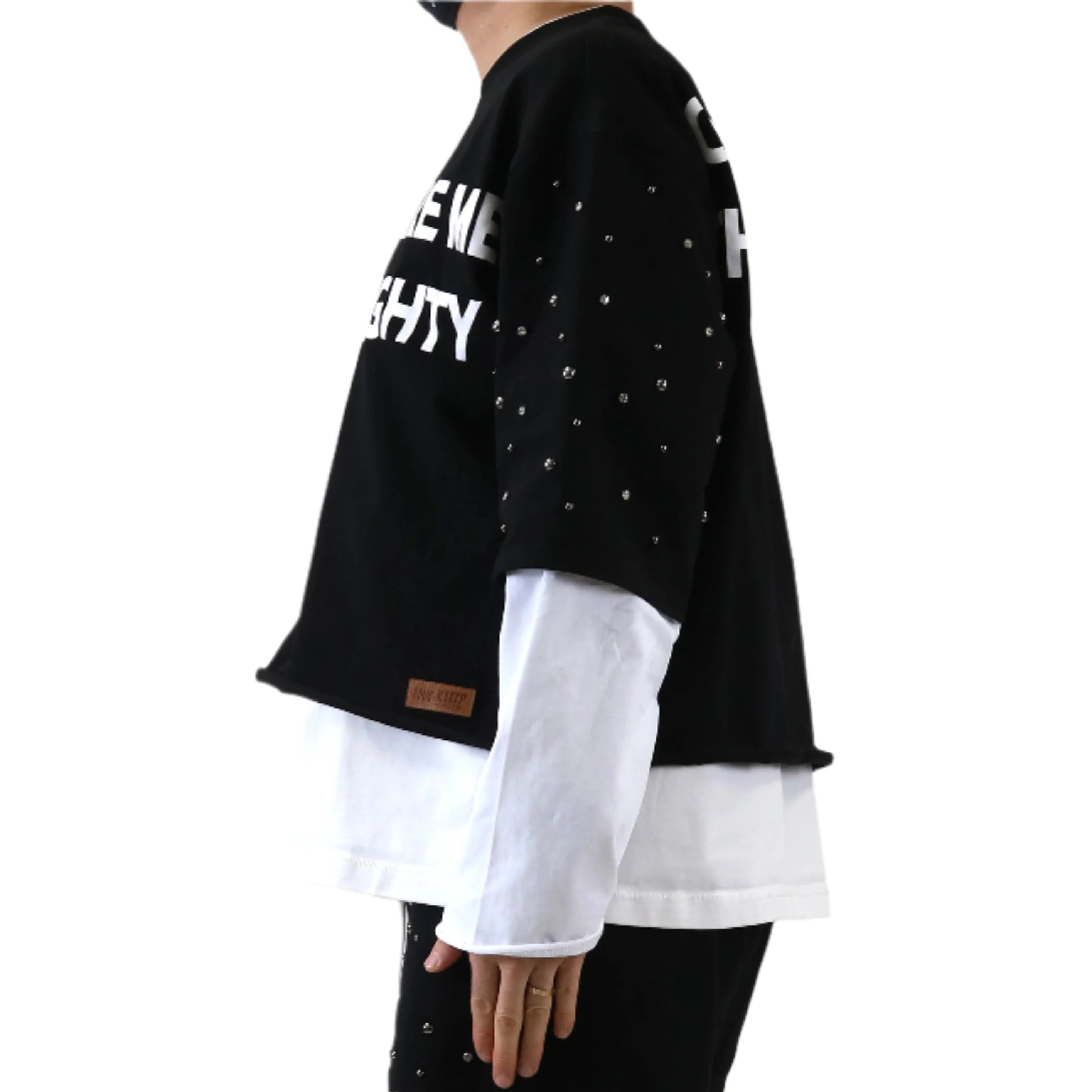 KARAN S/N Jersey 3/4 Sleeve Crop top Tee with Layered long sleeve