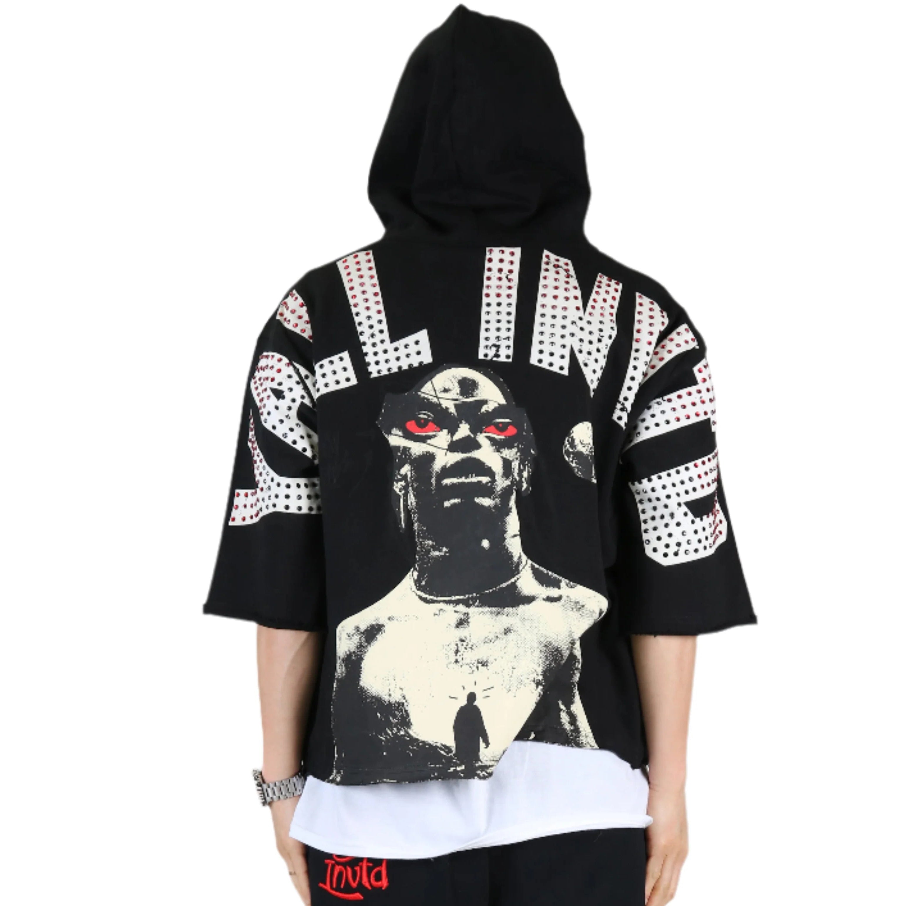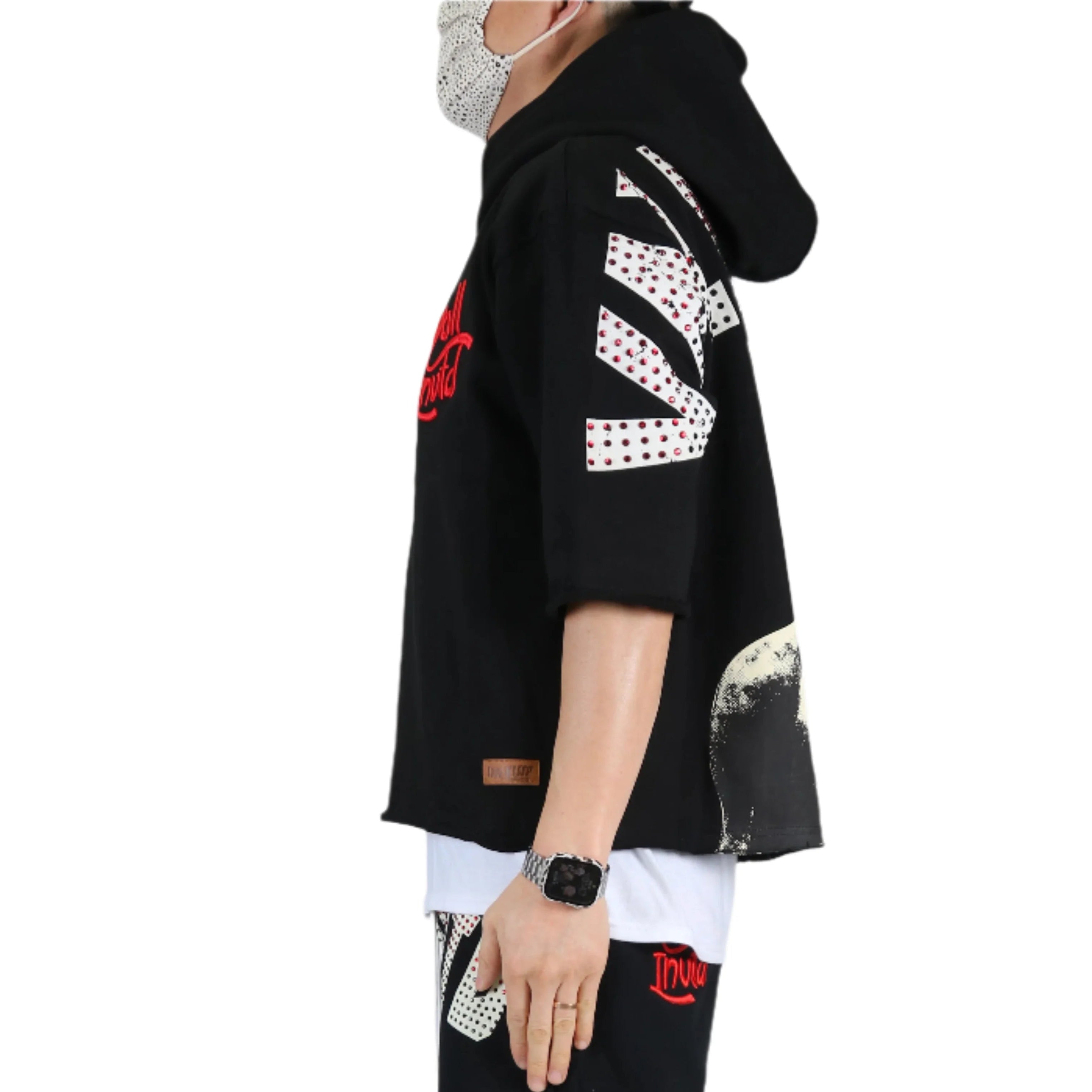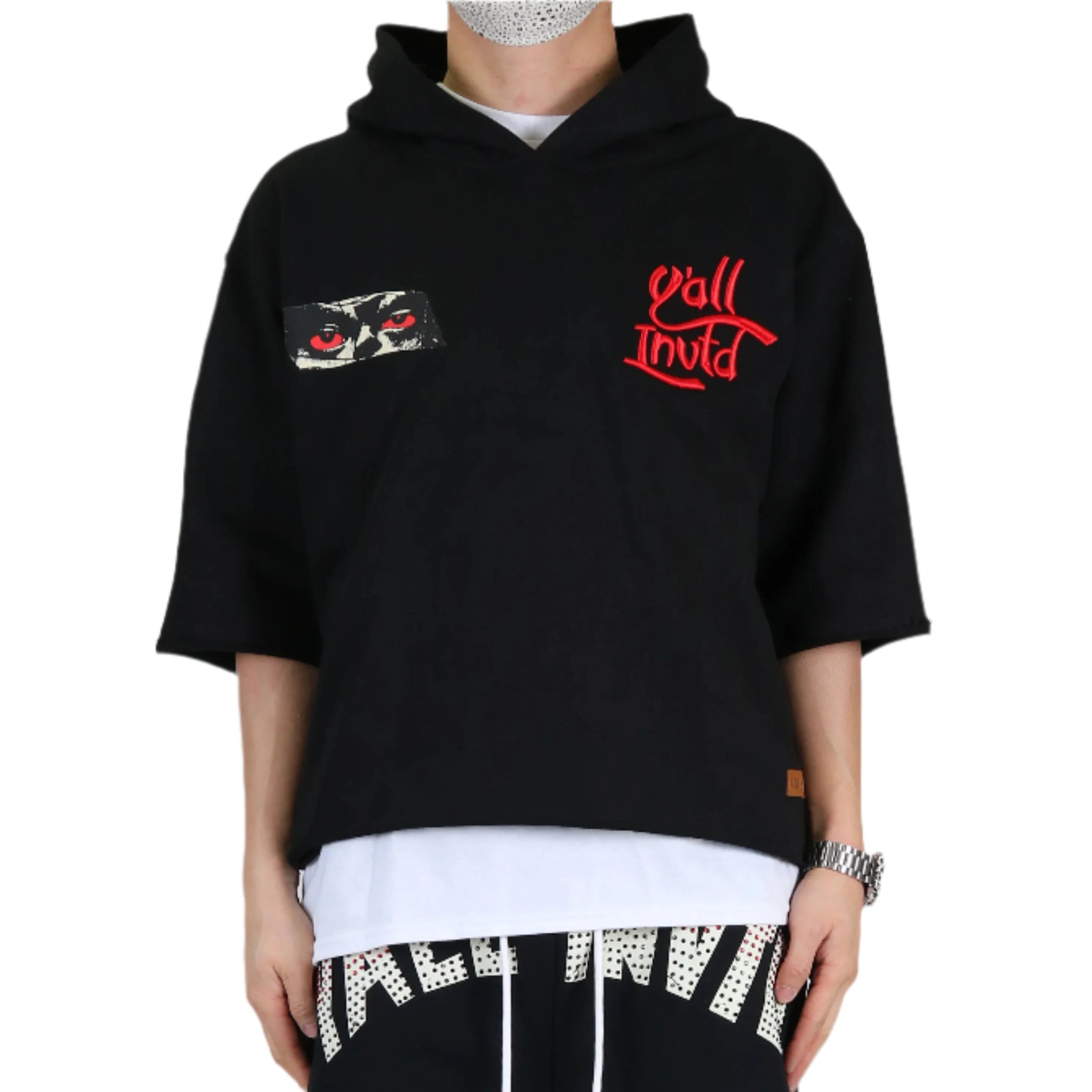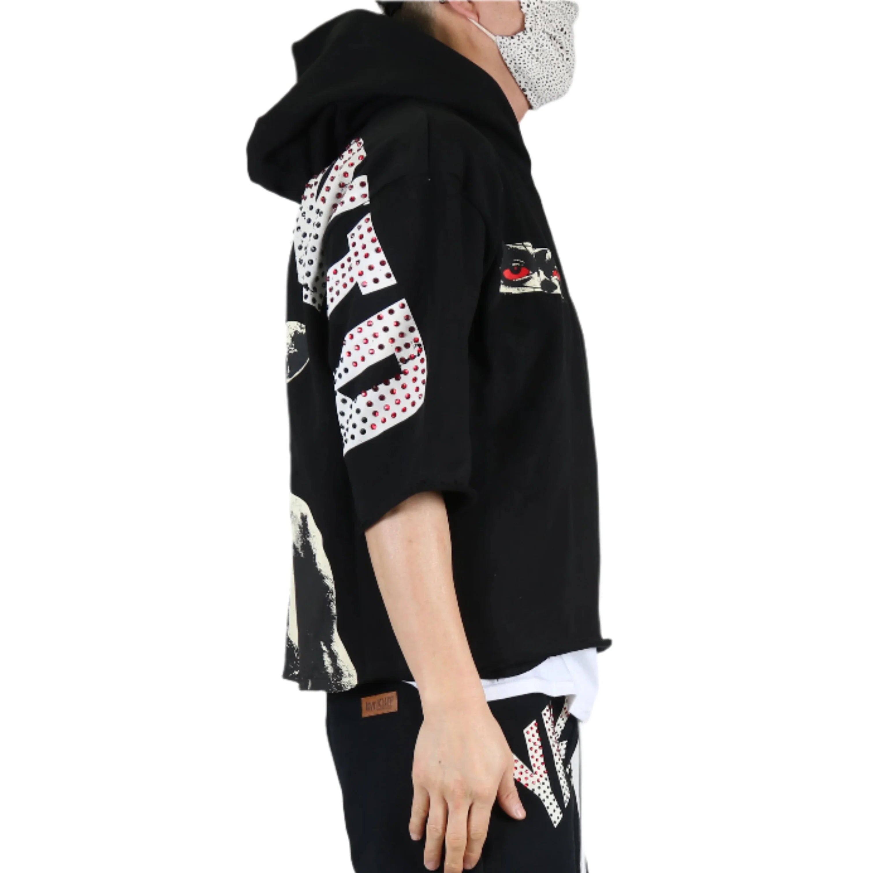 MIESHA French Terry 3/4 Sleeve Crop Top Pullover Hoodie