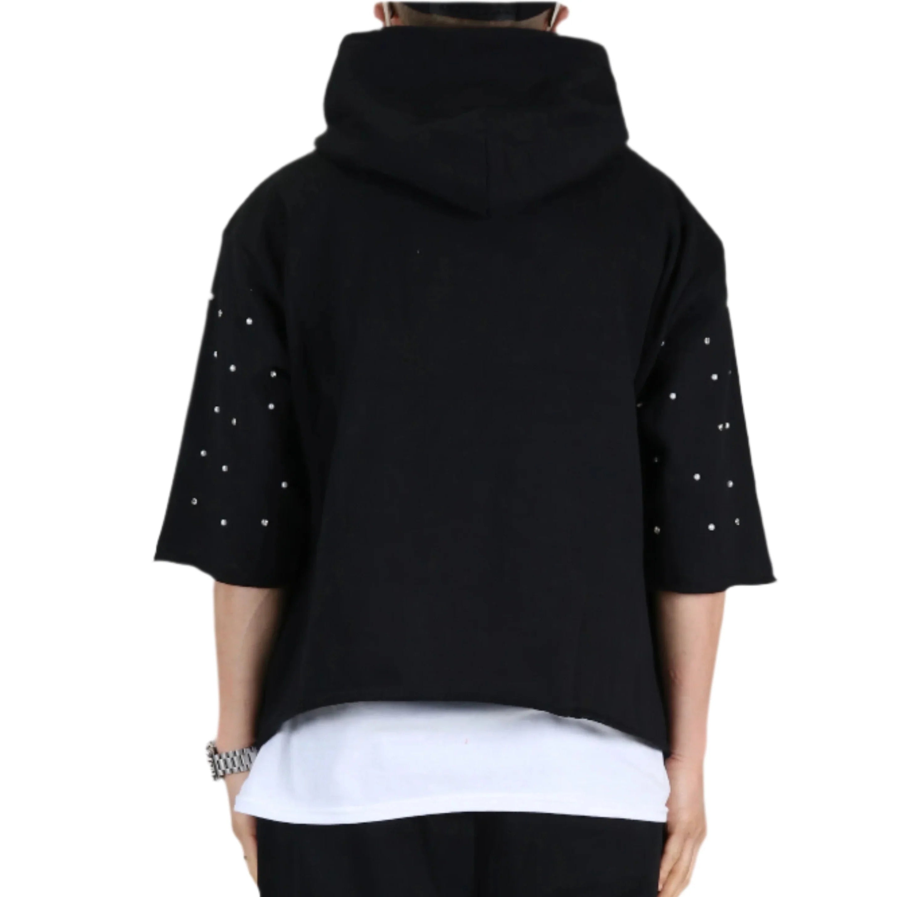 PROCO French Terry 3/4 Sleeve Crop Top Pullover Hoodie