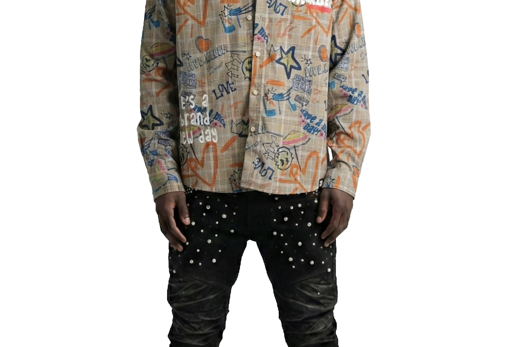 TASSE Men's ripped & repaired short sleeve button down shirt