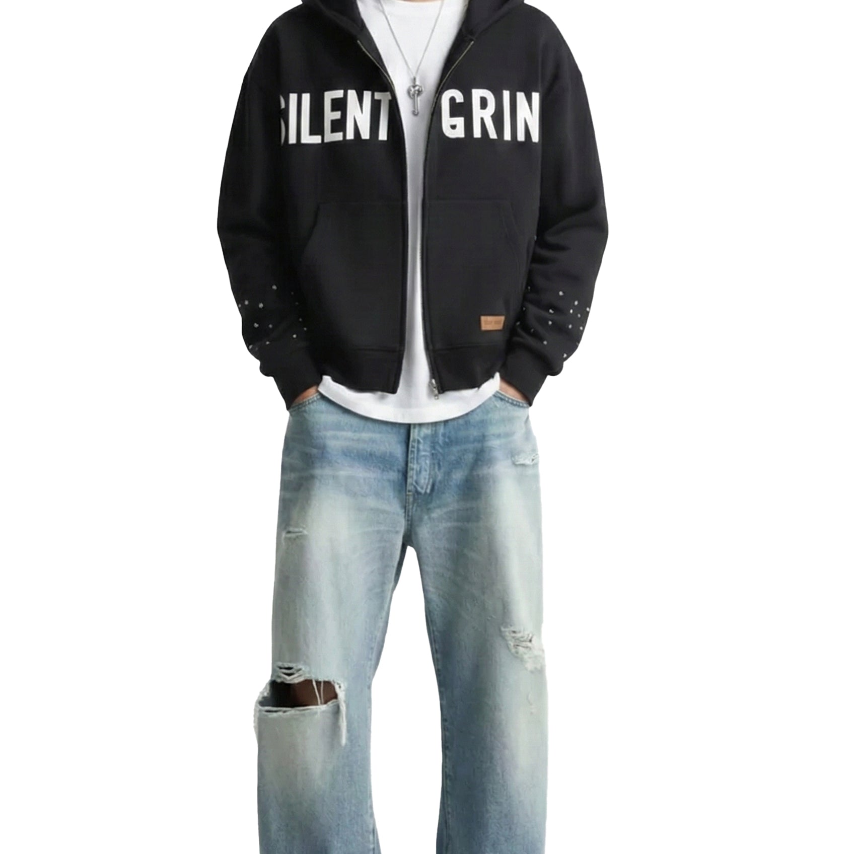 NEW KARAN French Terry Long Sleeve Crop Top Full Zip Hoodie