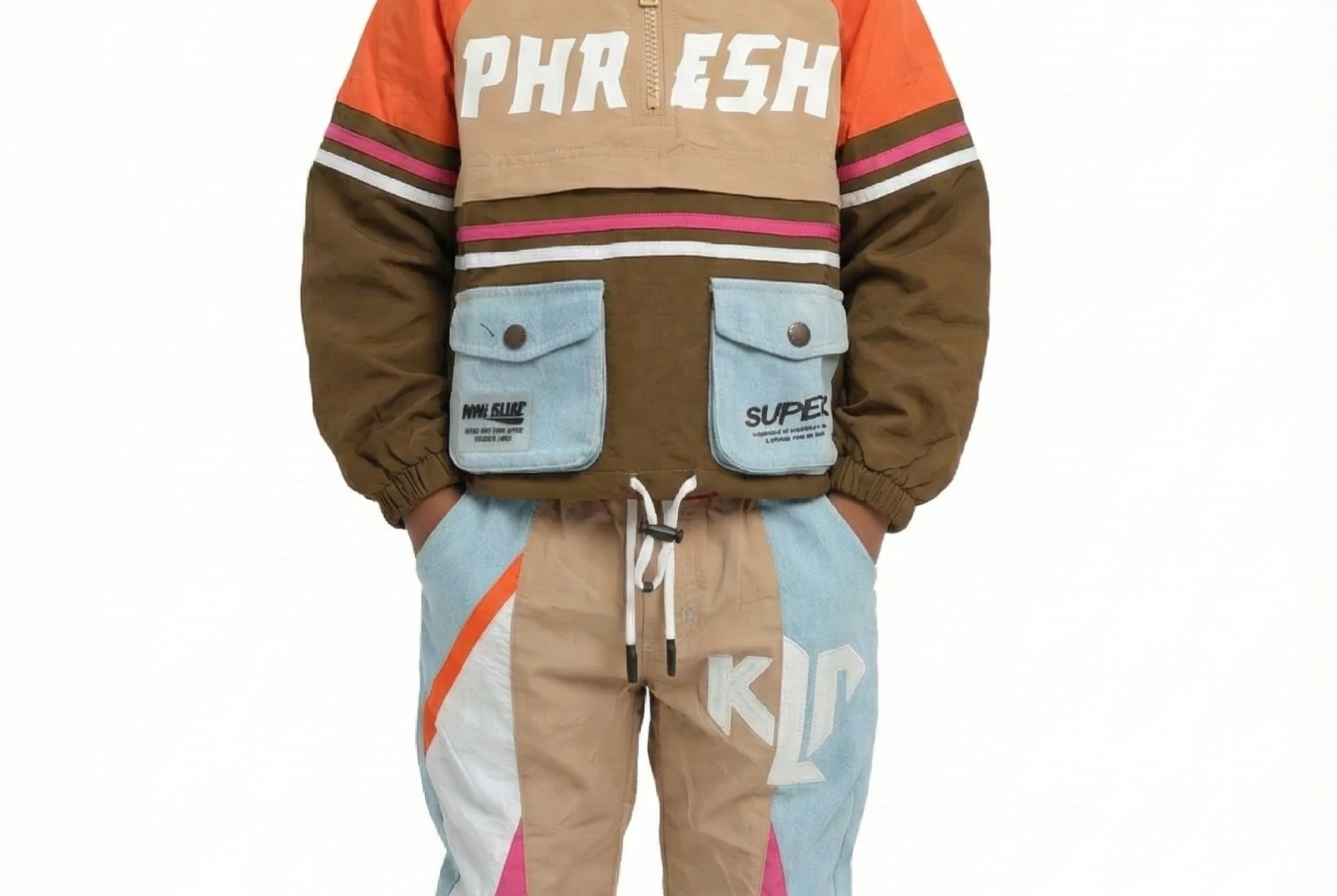 KLOUD Kid's premium crispy nylon coach jacket & cargo jogger pants set