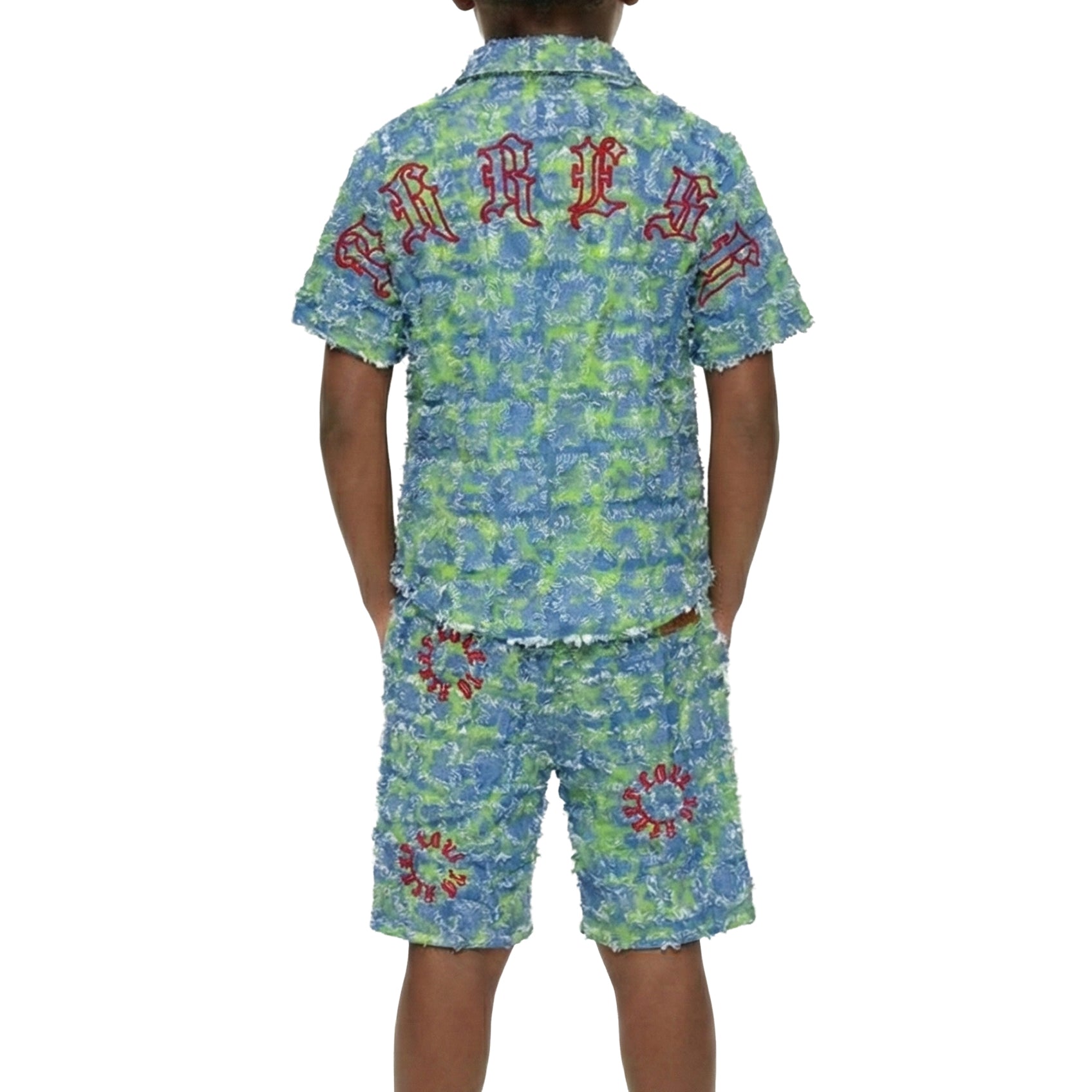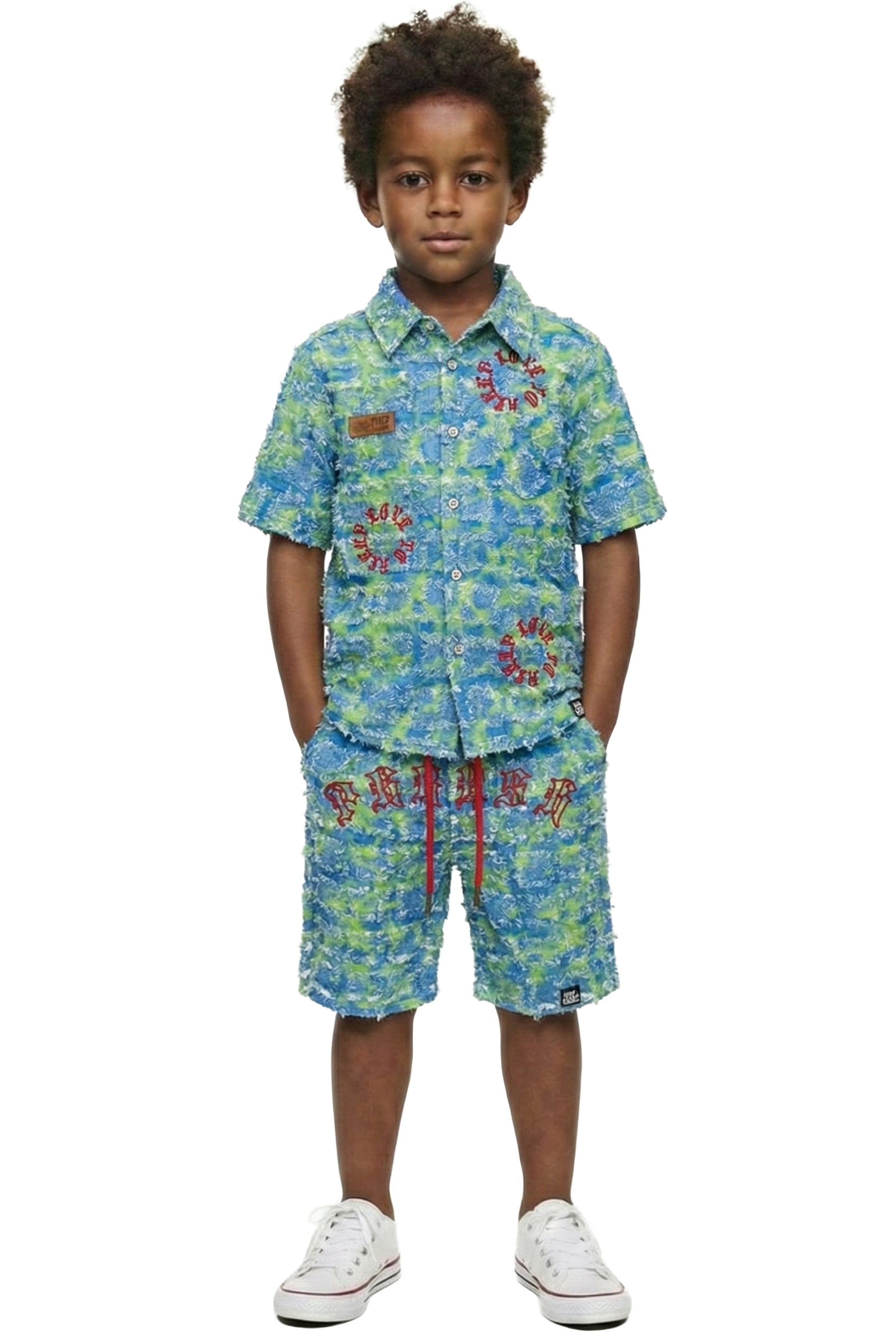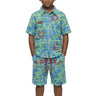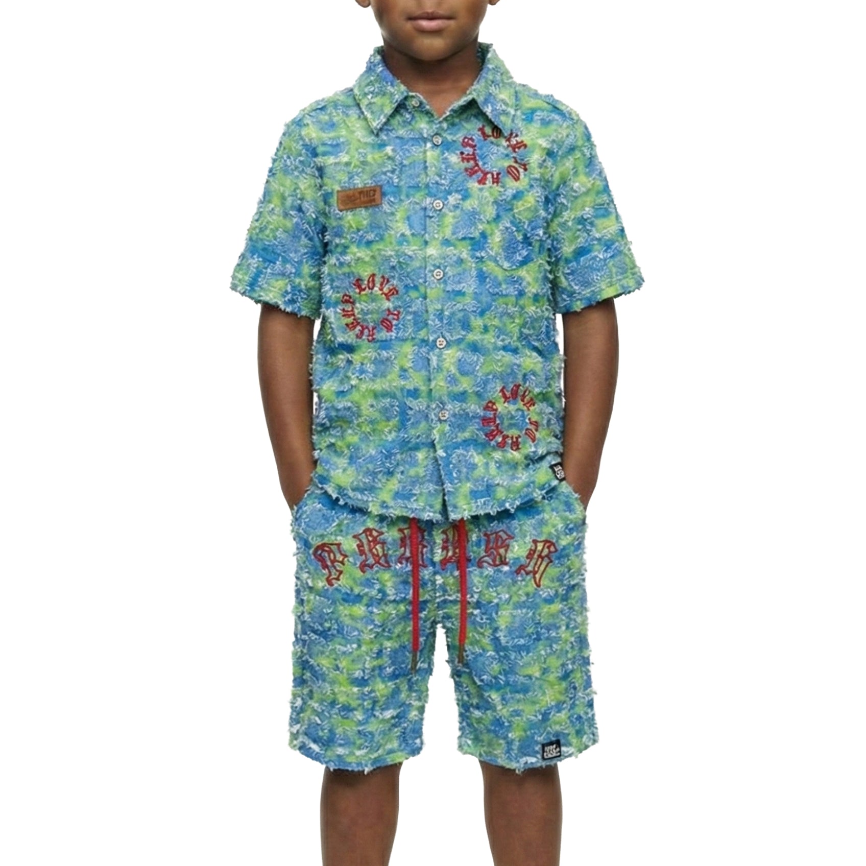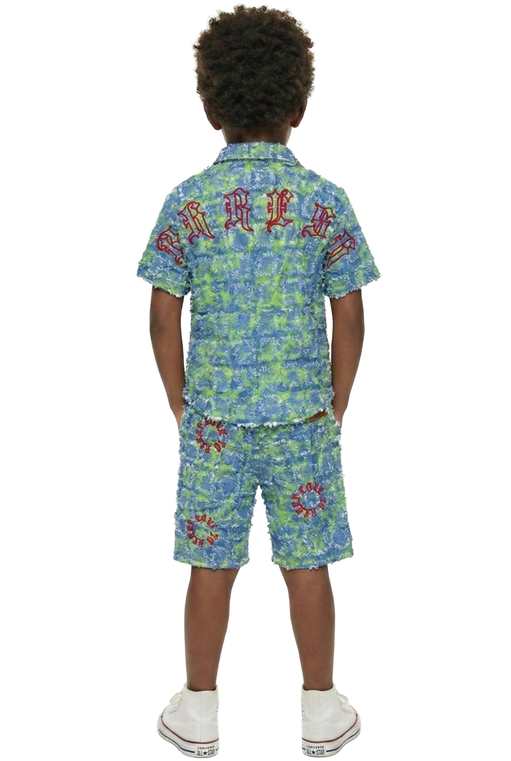 CITRON Kid's ripped & repaired short sleeve button down shirt & Matching Short Pants set