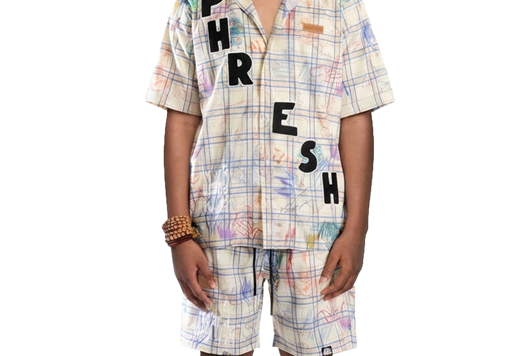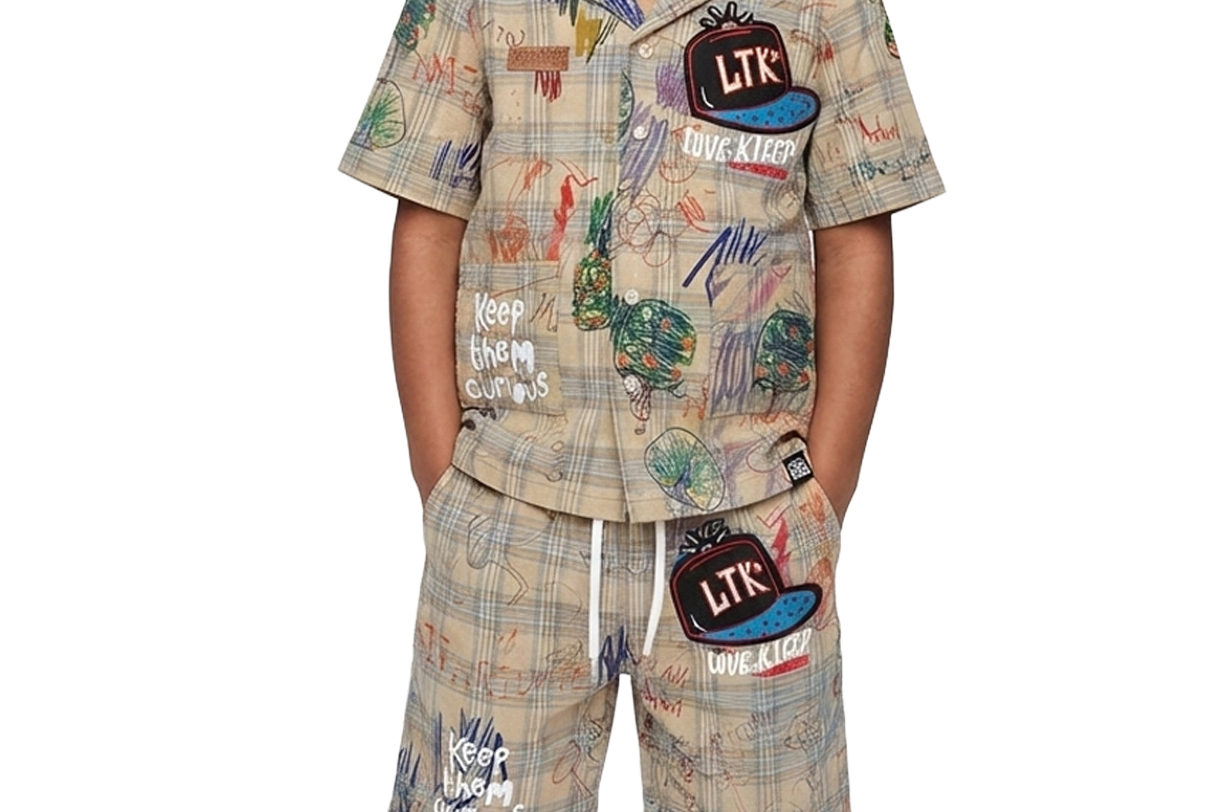 RANS Kid's short Sleeve Plaid button down shirt & Matching Short Pants Set