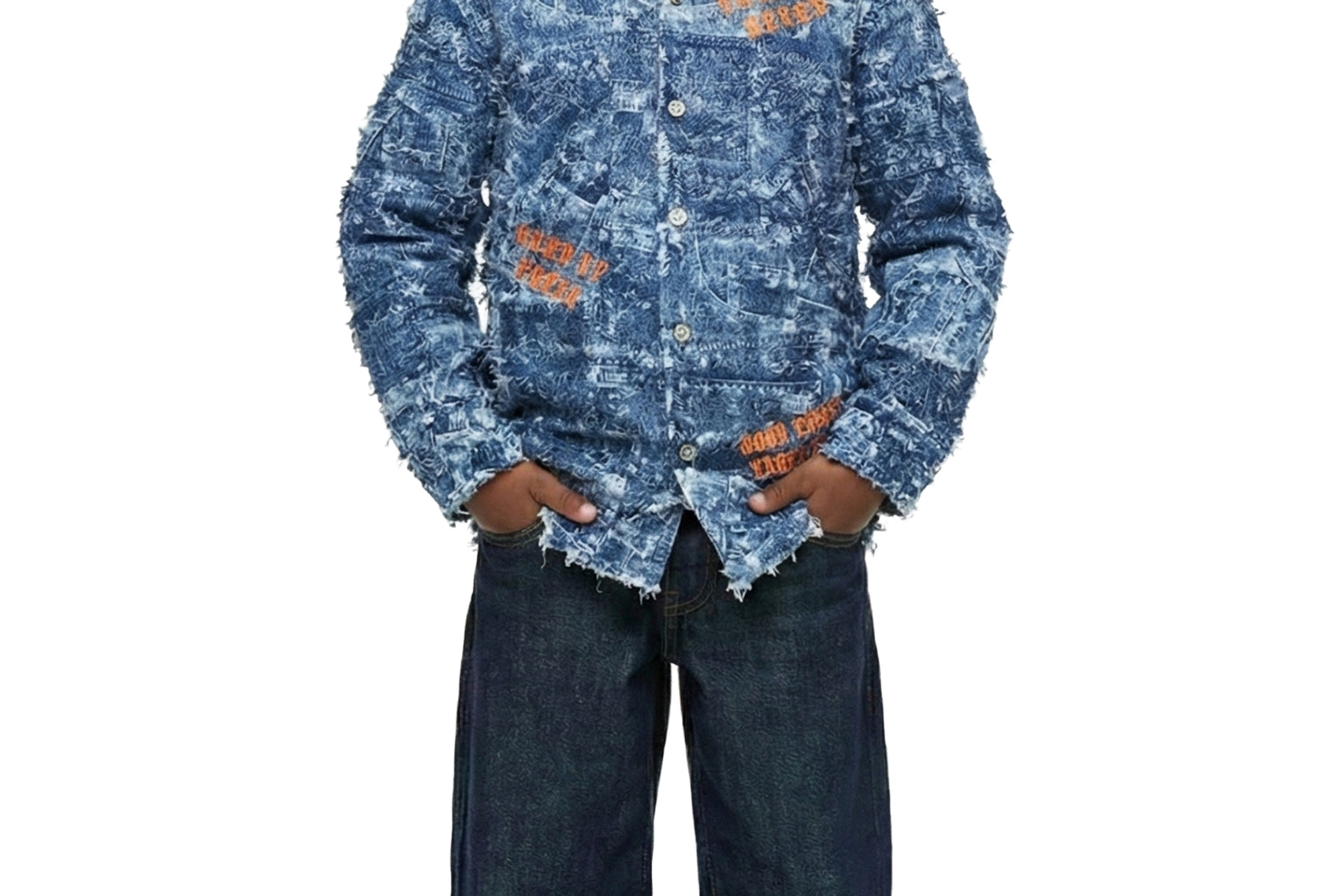 JESTER Kid's ripped & repaired long sleeve button down shirt