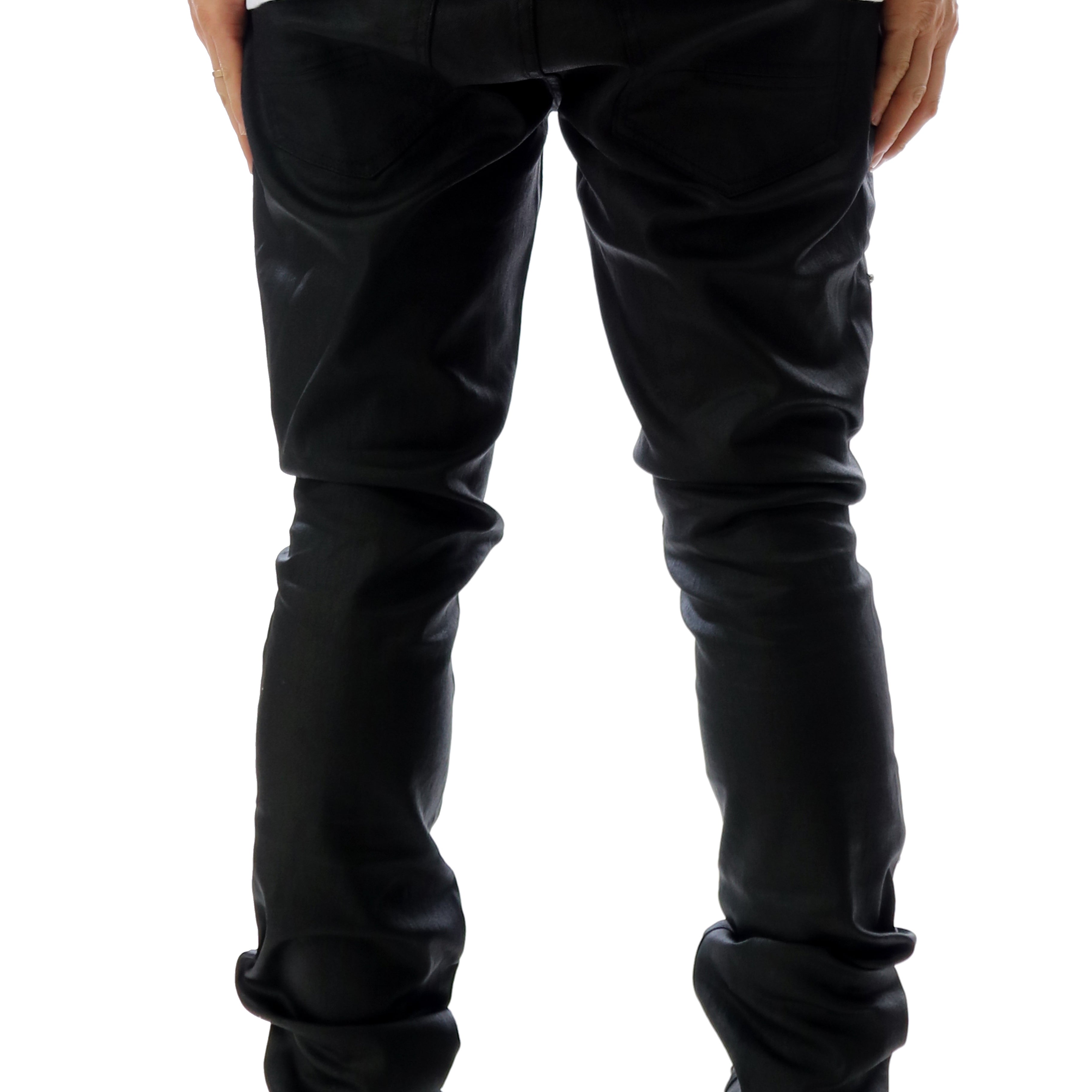 CLAY Men's Premium Wax Coated Skinny Denim Pants with Crystal Stud in front