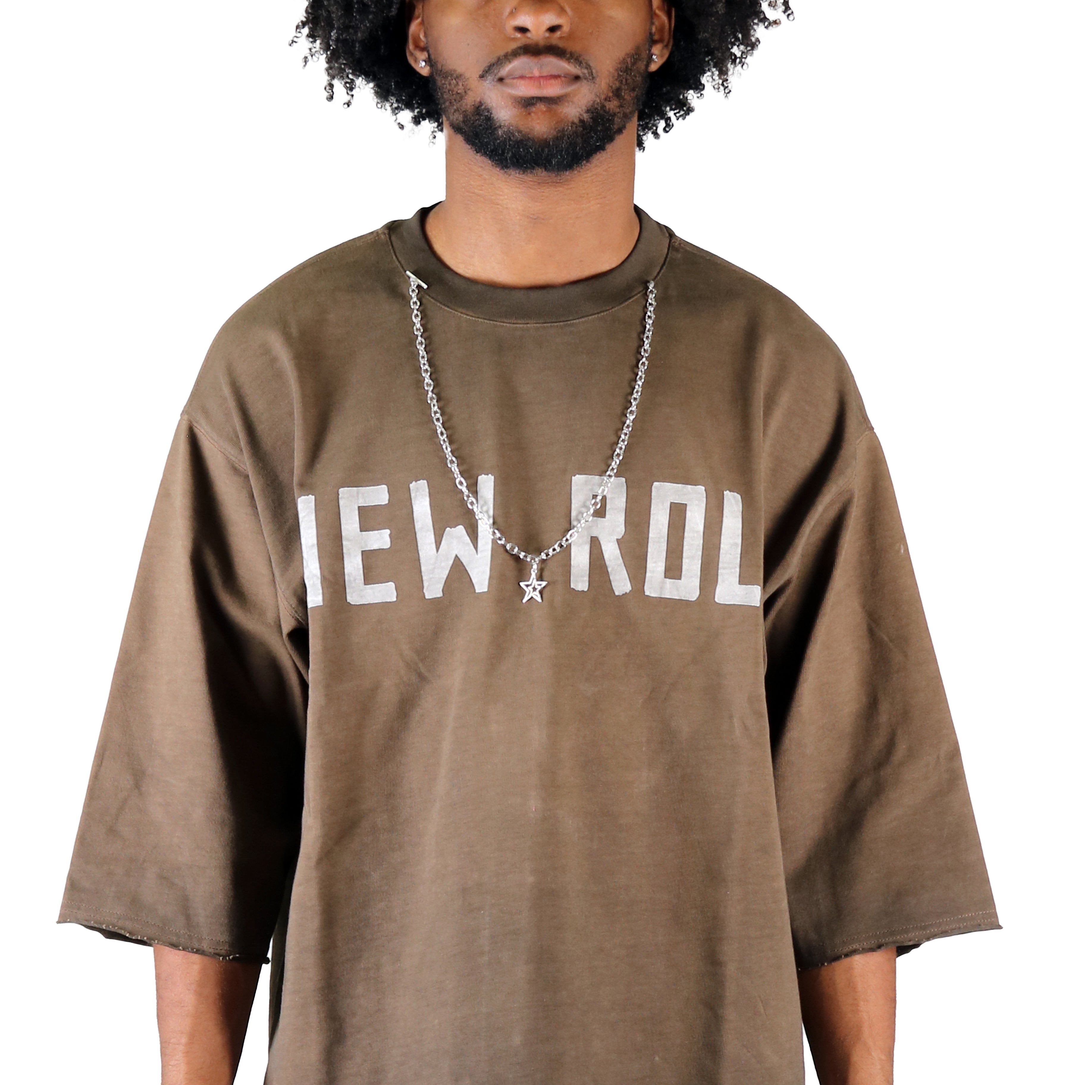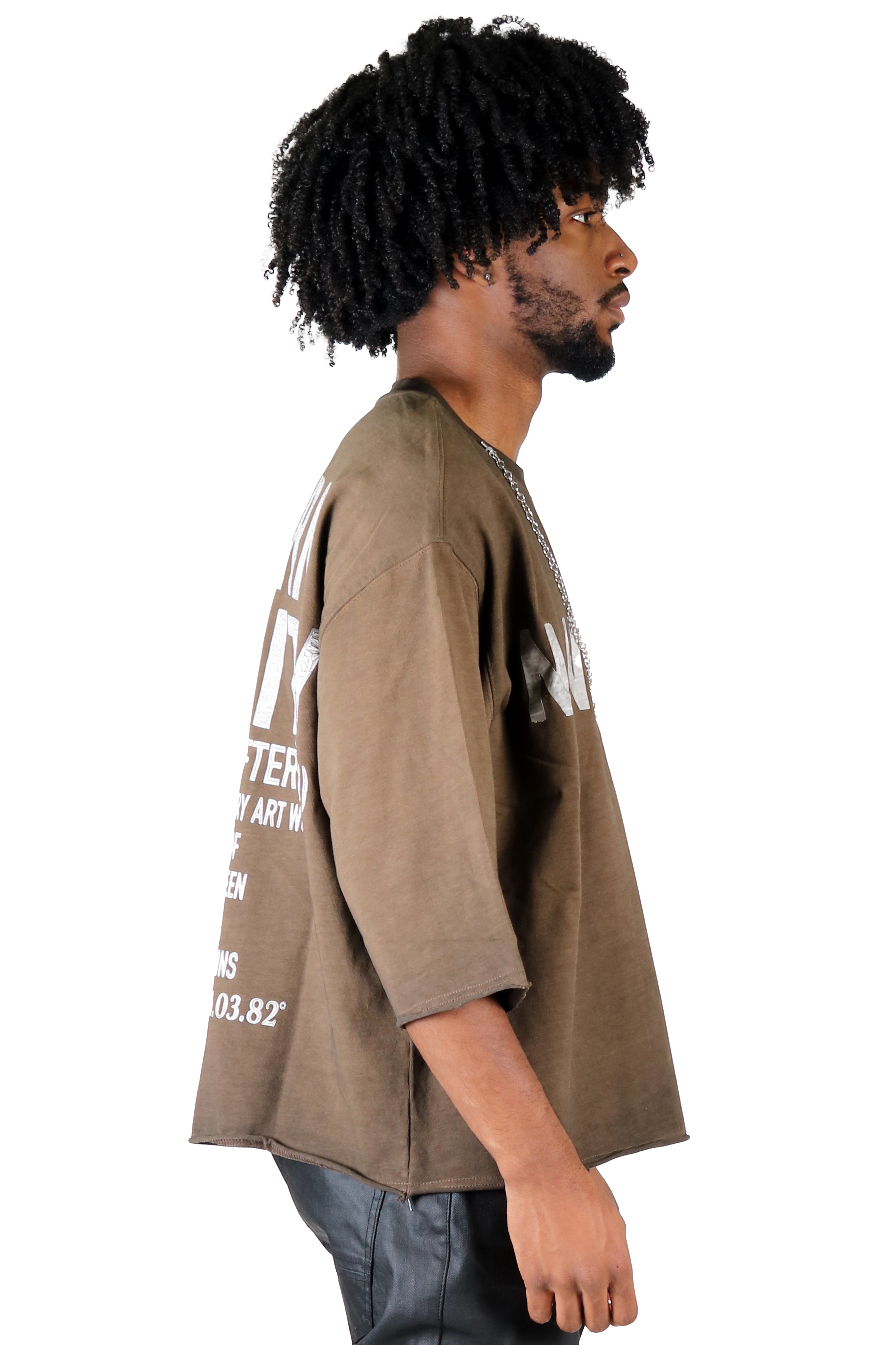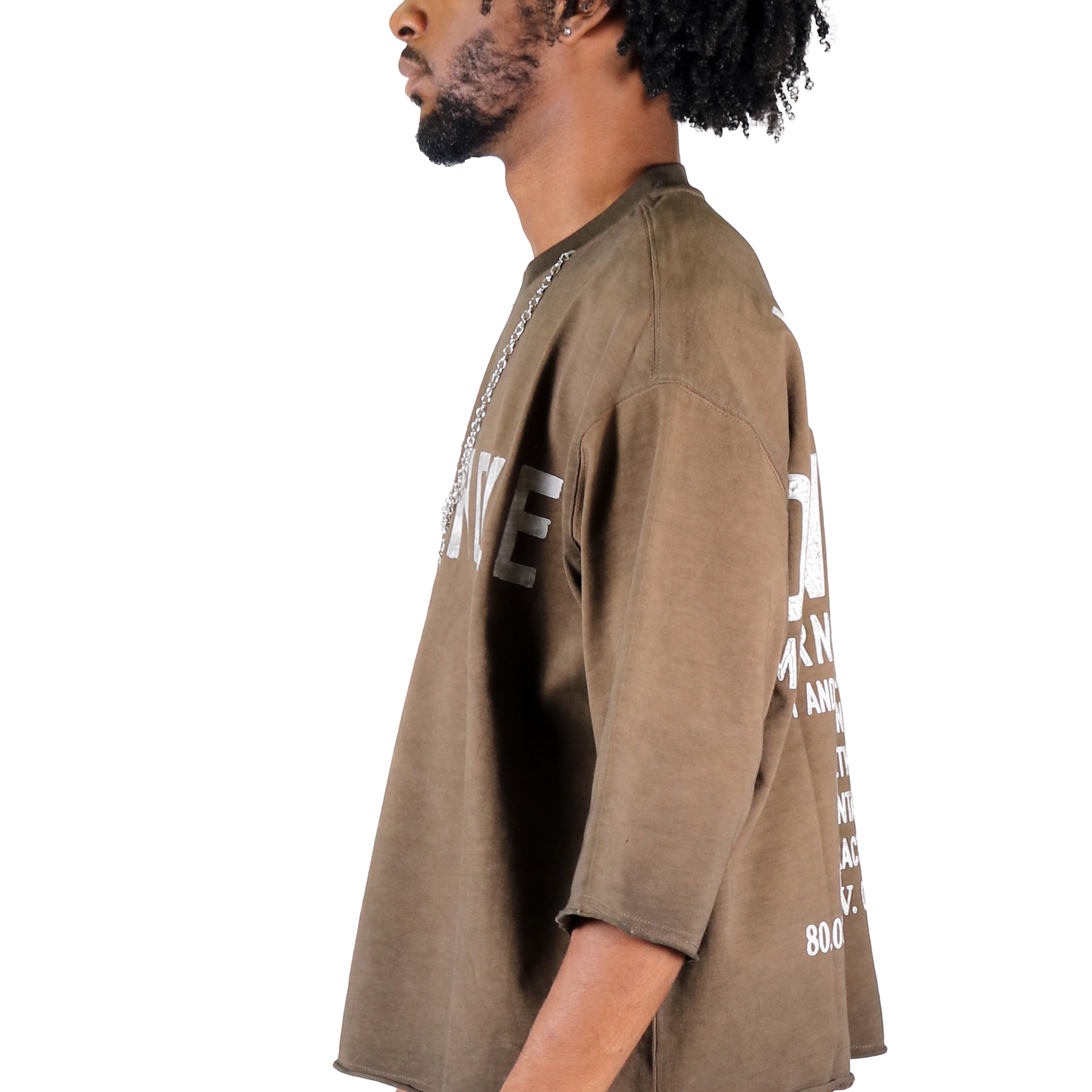 A laid-back essential with a lived-in feel — now with a bold accessory twist. This washed S/N jersey crop top is made from soft, breathable fabric and cut in a relaxed boxy silhouette for all-day ease. Featuring 3/4 sleeves, drop shoulders, and a cropped hem, it delivers effortless streetwear edge.
